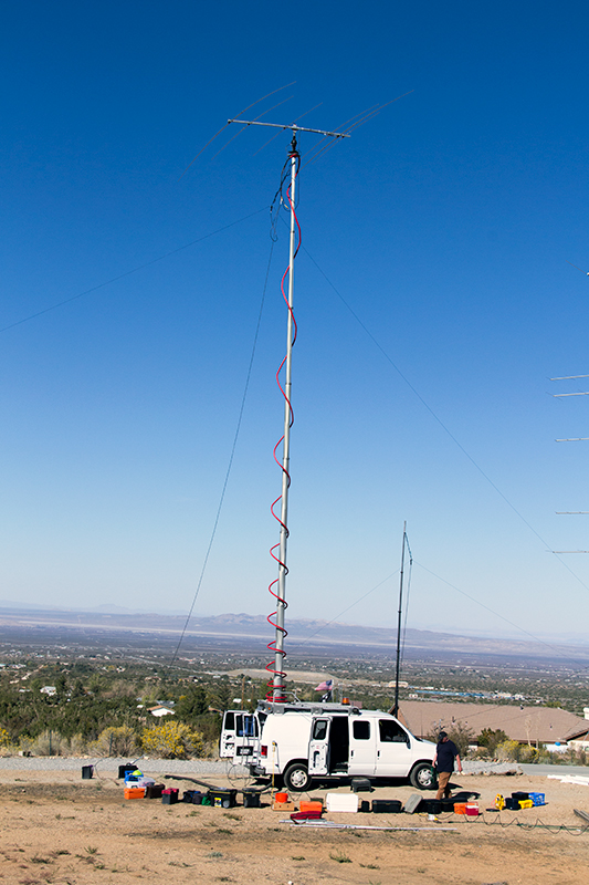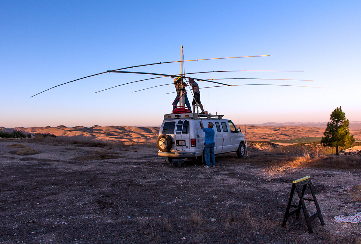 Mobile contestingI have also operated CW and SSB contests from my four wheel drive truck. July 2011, IARU HF World Championship (#1 Single Operator, Mixed Mode, Low Power, San Diego Section, IARU Zone 6). October 2014, California QSO Party (with K6VCR), operated in counties of Kern DM04, Ventura DM04 [new M/S LP record], Orange DM13 [new M/S LP record], and Los Angeles DM04.