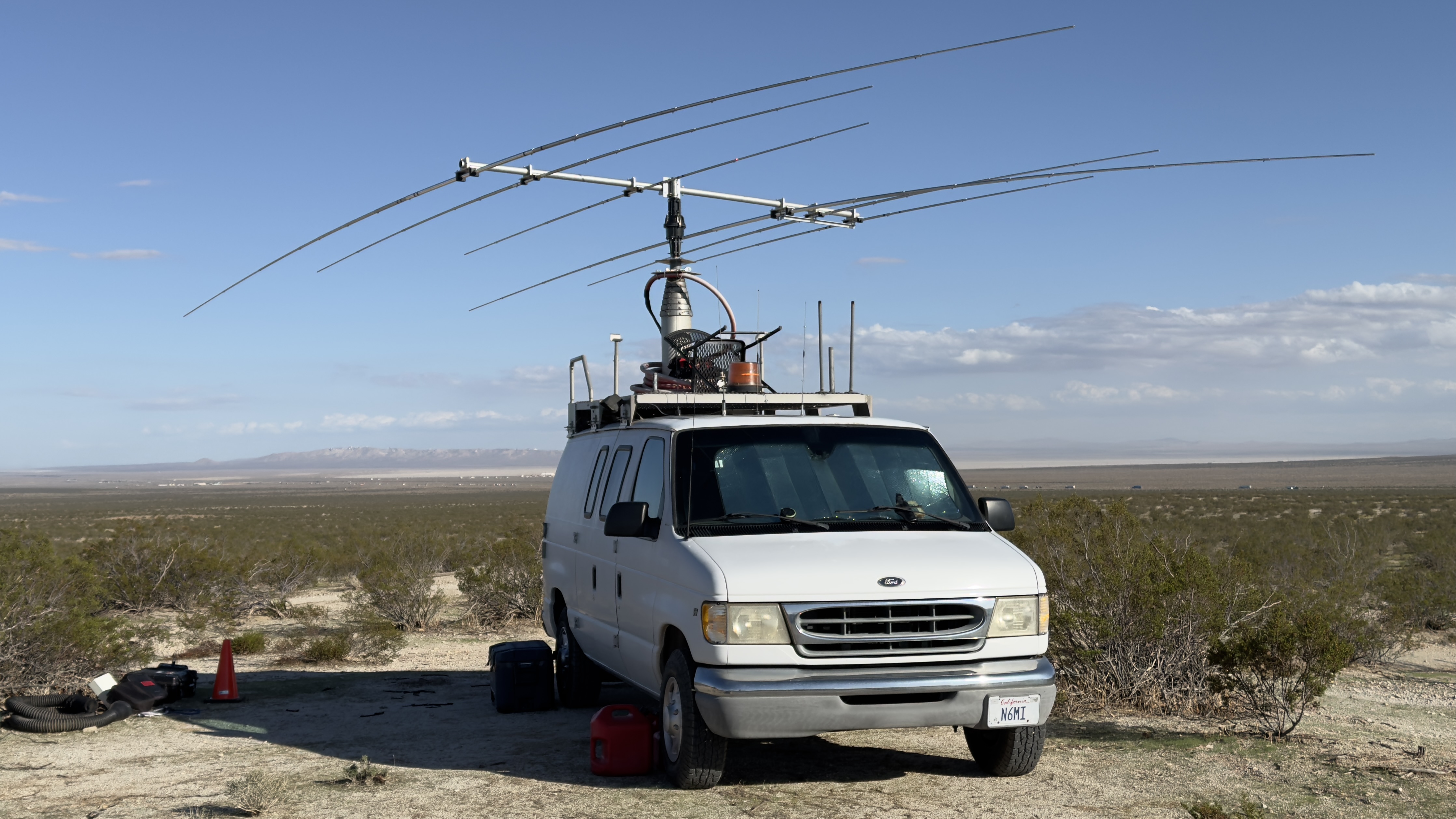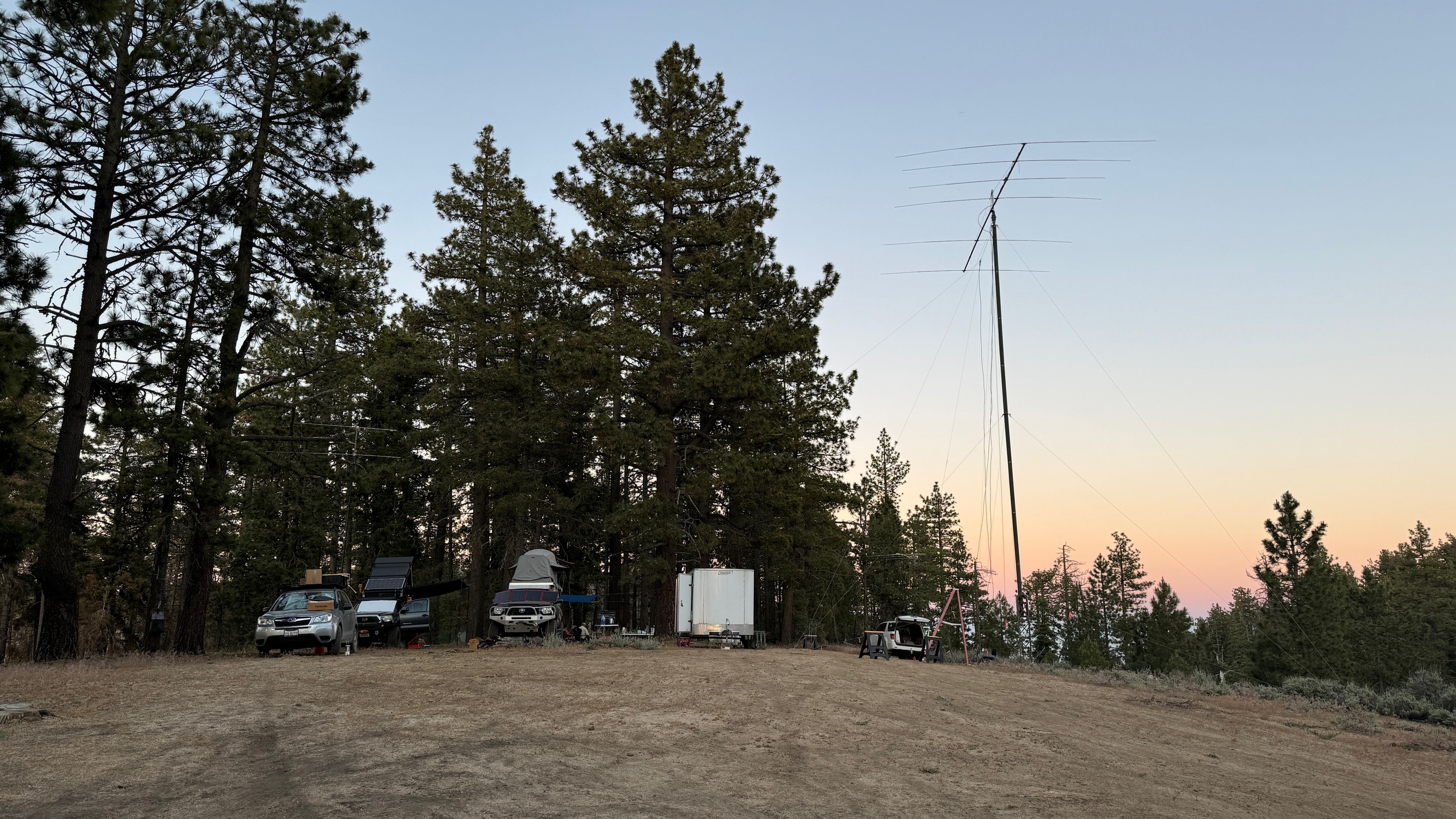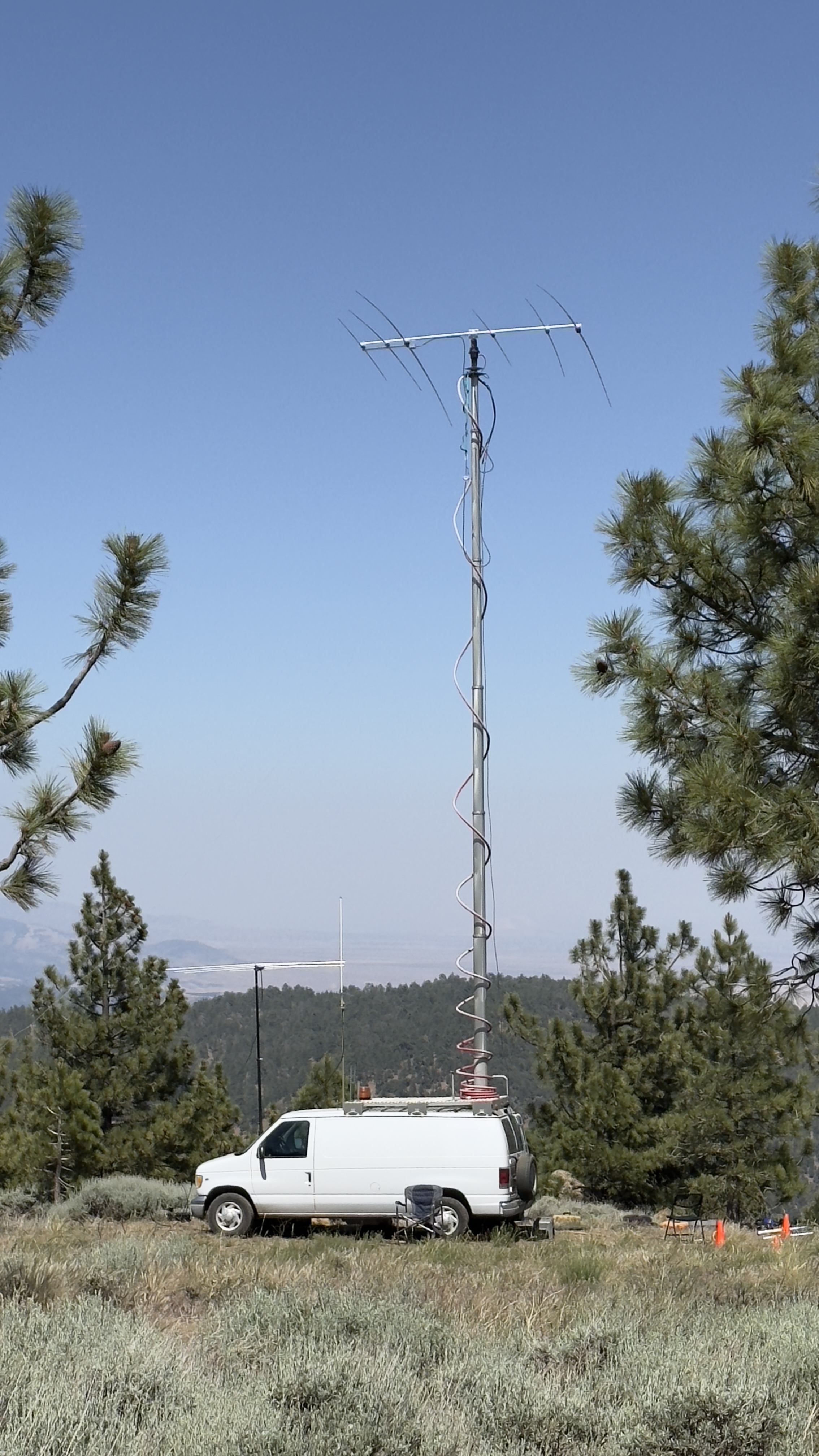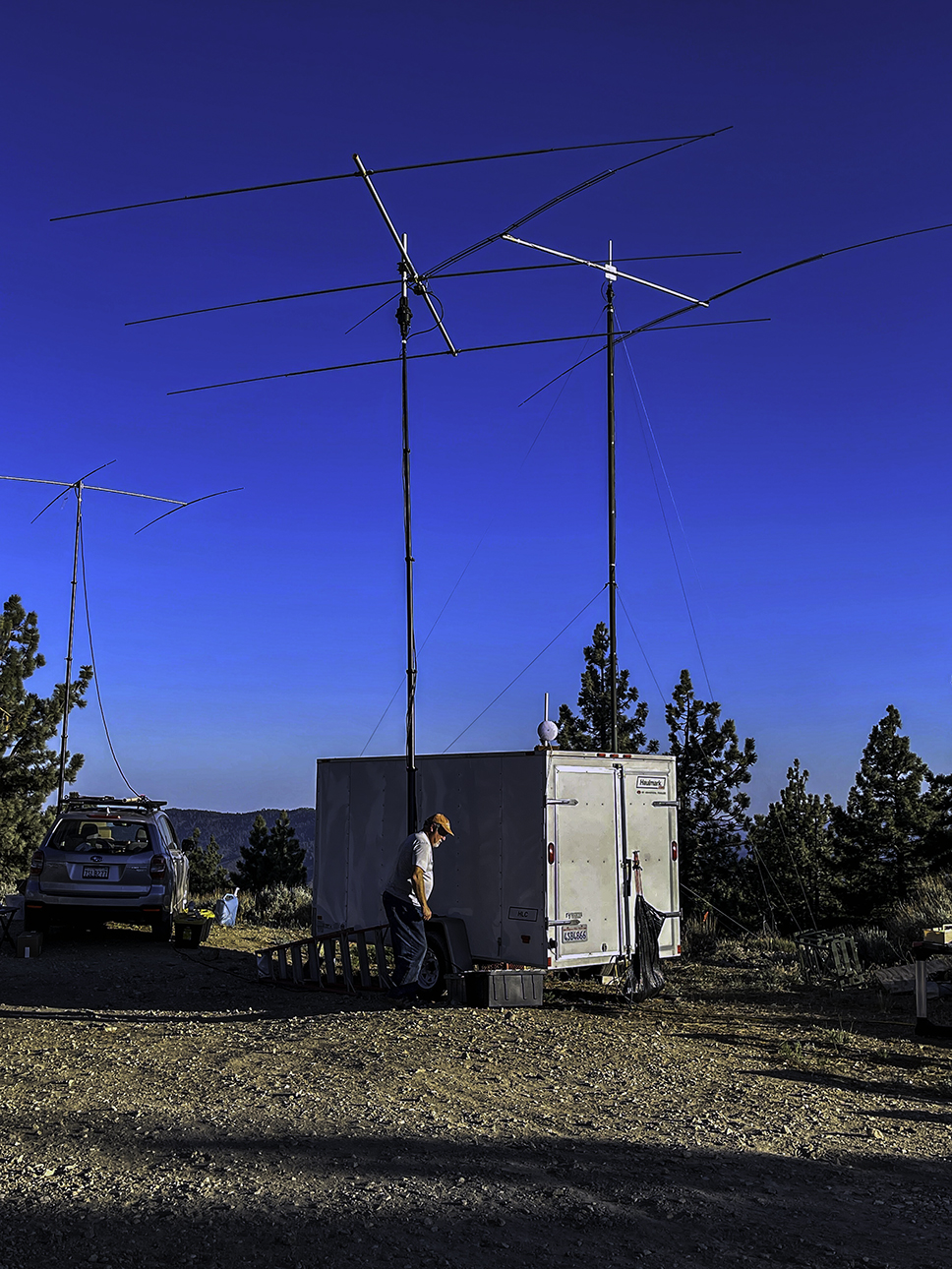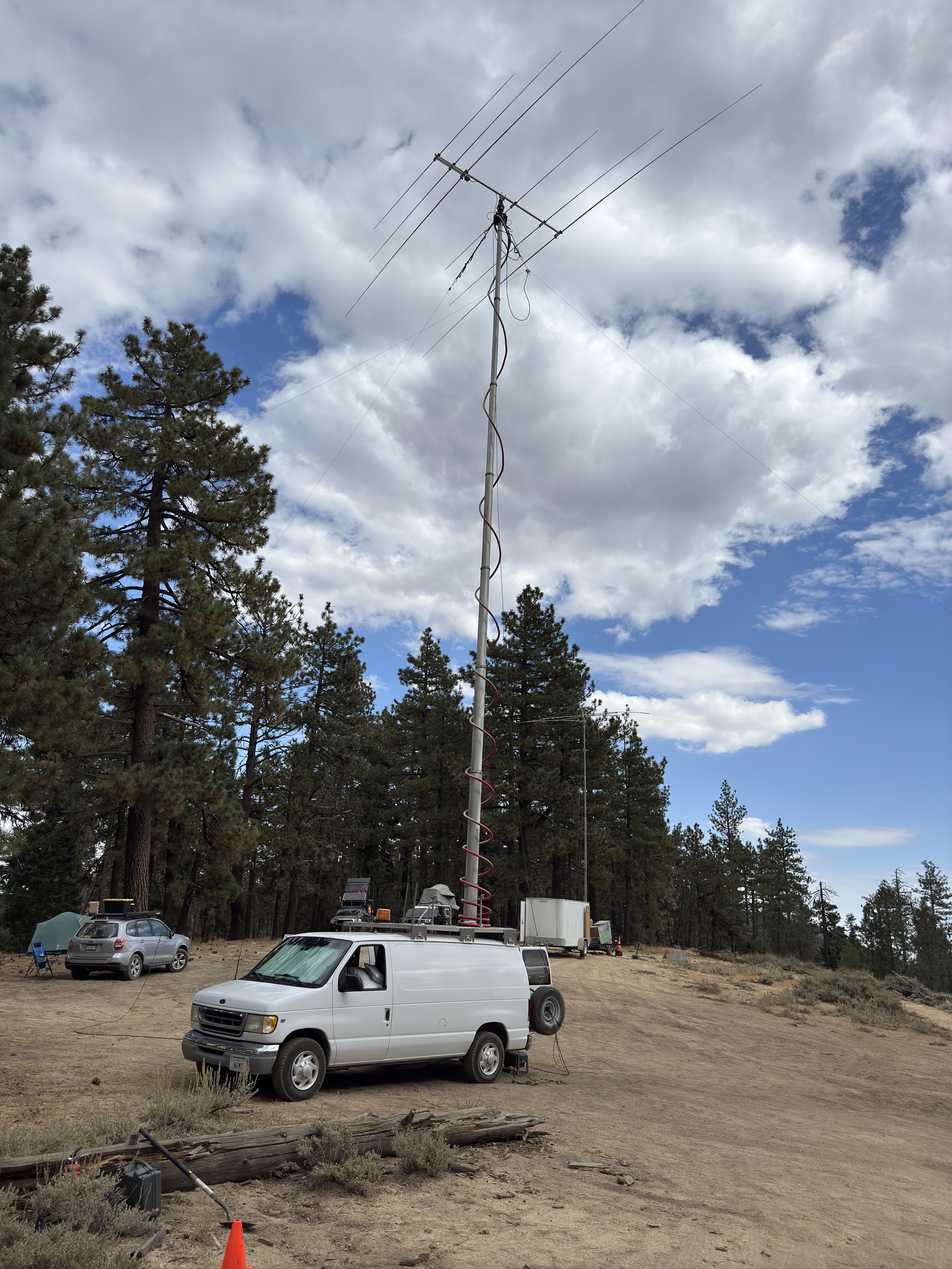 2023In May 2023, Jim and Sheila Forsyth hosted a multi-operator CQ Worldwide WPX Contest group at the AF6O station in DM14 (in in the California Mojave desert with thousands of blooming Yucca plants). This San Bernardino County station has a gentle downward slope toward Japan and Europe (good for low bands). We used the AF6O KT34A four element yagi at about 50 feet on 10, 15 and 20 meters. We used delta loops on 40 and 80 meters. Scott (N6MI) and Jim (AF6O) often operated as a team in the pileups; Jim's scratch paper could be an art project. Drew (N7DA) did a great job at the computer and paddle. Our raw results: 3.5 (16 contacts); 7 (280 contacts); 14 (507 contacts); 21 (419 contacts); 10 (25 contacts). The Yaesu FTdx101D waterfall was a great help with search and pounce. After adjudication, our final score was 1,238,292. We finished first in California (the Sixth Call Area) and tenth in North America. On June 10-11, 2023, N6MI and K6VCR went portable as "N6MI" from the Mojave Desert (near Fort Irwin, California) to hand out a few rare DM15 contacts during the ARRL VHF contest. We operated from a converted news van. We ran 500 watts (or less) on six meters to a five element yagi at 60 feet. We ran 100 watts on two meters for a handful of contacts. Before log checking, we worked 11 CW, 49 USB, and 156 FT8 contacts (almost all on six meters) -- 123 grids with contacts in the continental United States, Hawaii, Mexico, Canada, Ireland, Switzerland, and France. Six meters was booming on Sunday morning, but we packed up after the weather turned to hail and thunderstorms. We won the certificate for this ARRL division (Orange) in the Limited Multioperator class. On June 24-25, 2023, Tom's Garage ARC operated in the ARRL Field Day (call, N6MI) as 2A SJV from Tecuya Peak (6,850 feet at our camp) in Kern County, California (DM04mu). We finished sixth in the country out of 308 entries in Class 2A. We camped immediately next to a very busy dirt road, about two miles from pavement and a rural pizza takeout restaurant. The nearest town was Frazier Park, California. Our team included NB6E, N6MI, K6VCR, N7DA, KN6OGP, K1BTW, and Broden Weeks (a high school student, not yet licensed). KN6OGP came down with a bug just before the contest, but his assistance with logistics and early Field Day planning was very helpful to the group. The first station was set up in a converted television news van with a pneumatic mast. The van station covered 80 (long wire), 20 (3 element yagi at 60 feet), and 10 meters (sloping dipole). The van radio was a Yaesu FTdx101D. The van also housed a 2 meter and 440 MHz station using an Icom IC-9700 and two very short yagis. The second station was set up in K6VCR's trailer. This station covered 40 (two element yagi on a 50-foot army surplus mast) and 15 (three element yagi on a 28 foot push up mast). The radio was an Elecraft K3. The GOTA station was set up on a table under a canopy (classic Field Day style); the photo was used on the cover of the June 2024 QST magazine. This station was operated by K1BTW and his soon-to-be licensed son, Broden (a high school student); that's K6VCR wearing his GOTA coach face. N7DA also served as a GOTA coach. Broden worked New Zealand and Australia stations on 10 meters when he wasn't pumping out contacts to the Field Day crowd under the watchful eye of K1BTW. We were visited by about a dozen travelers. The weather was cold at night (in the 30s) but excellent (sunny, in the 60s) during the day. We made 2,059 contacts from the two main stations (the van and trailer). Our GOTA station also made 209 contacts — fantastic. Call: W6E, October 7-8, 2023