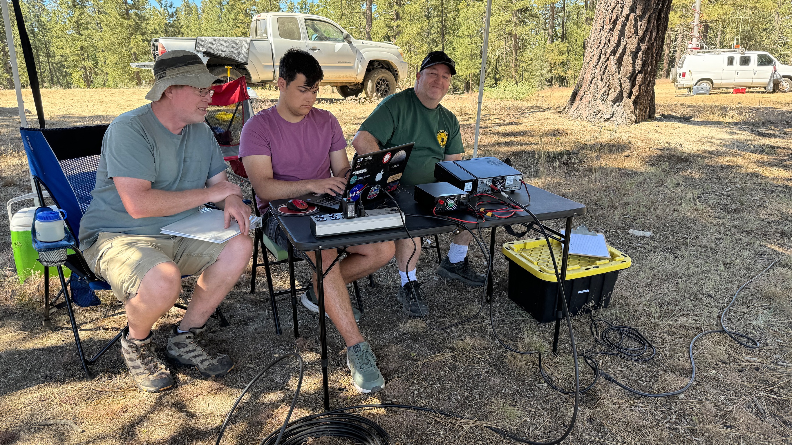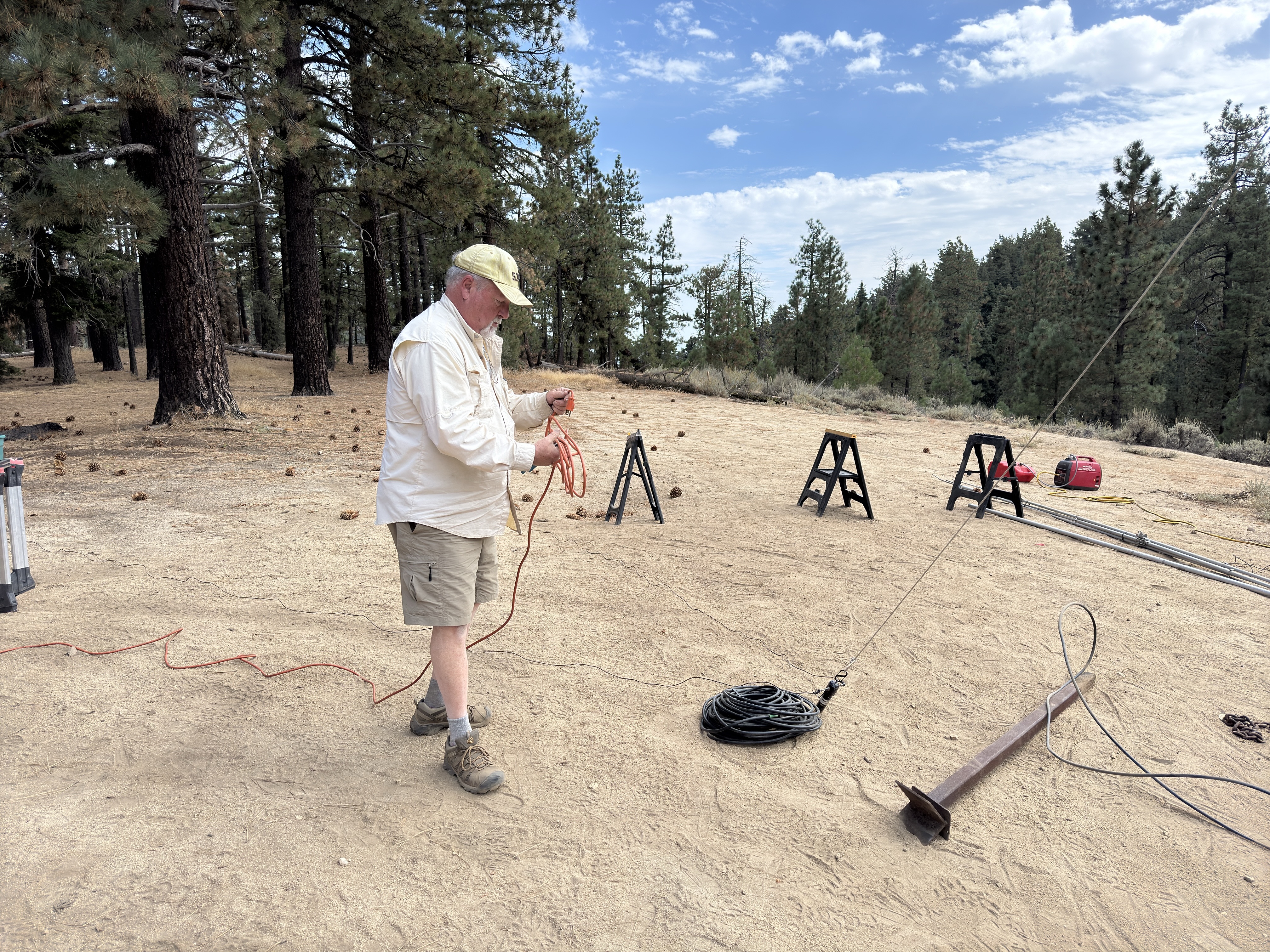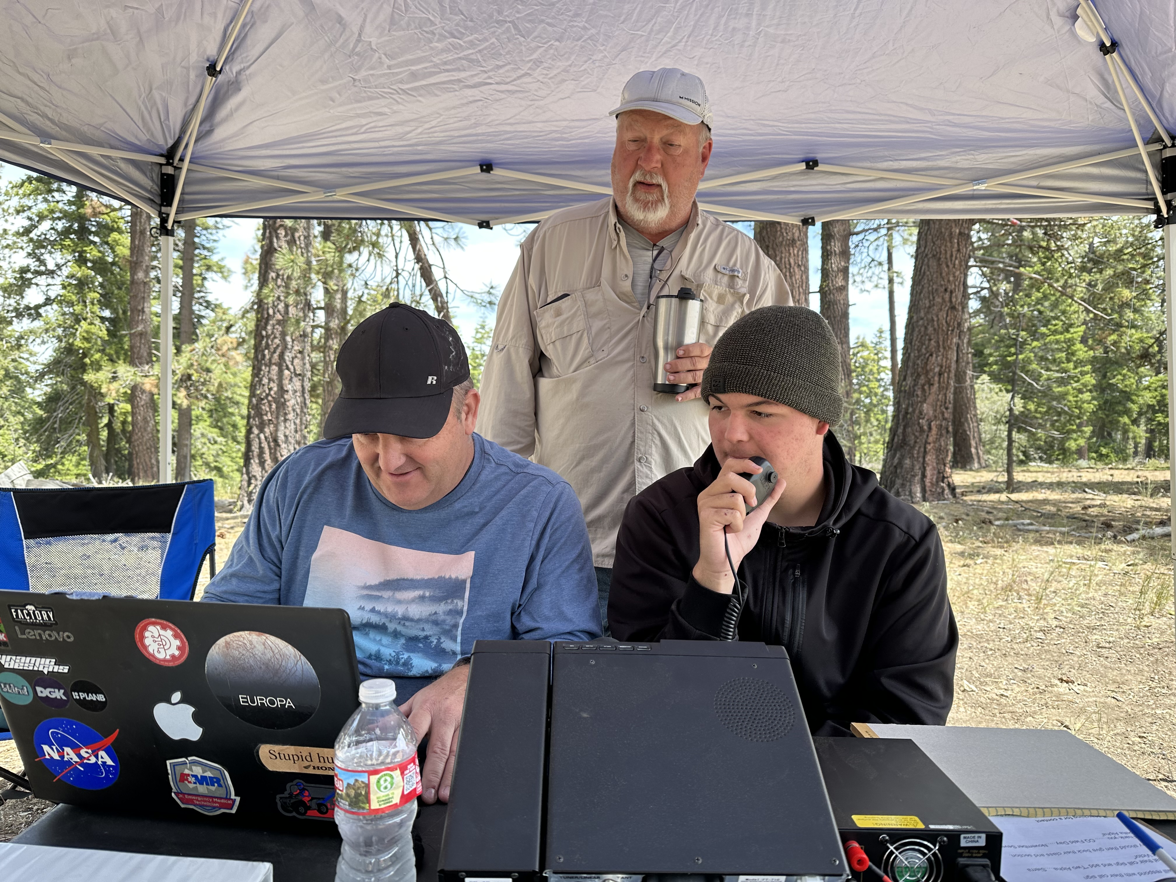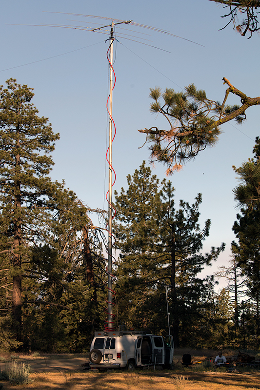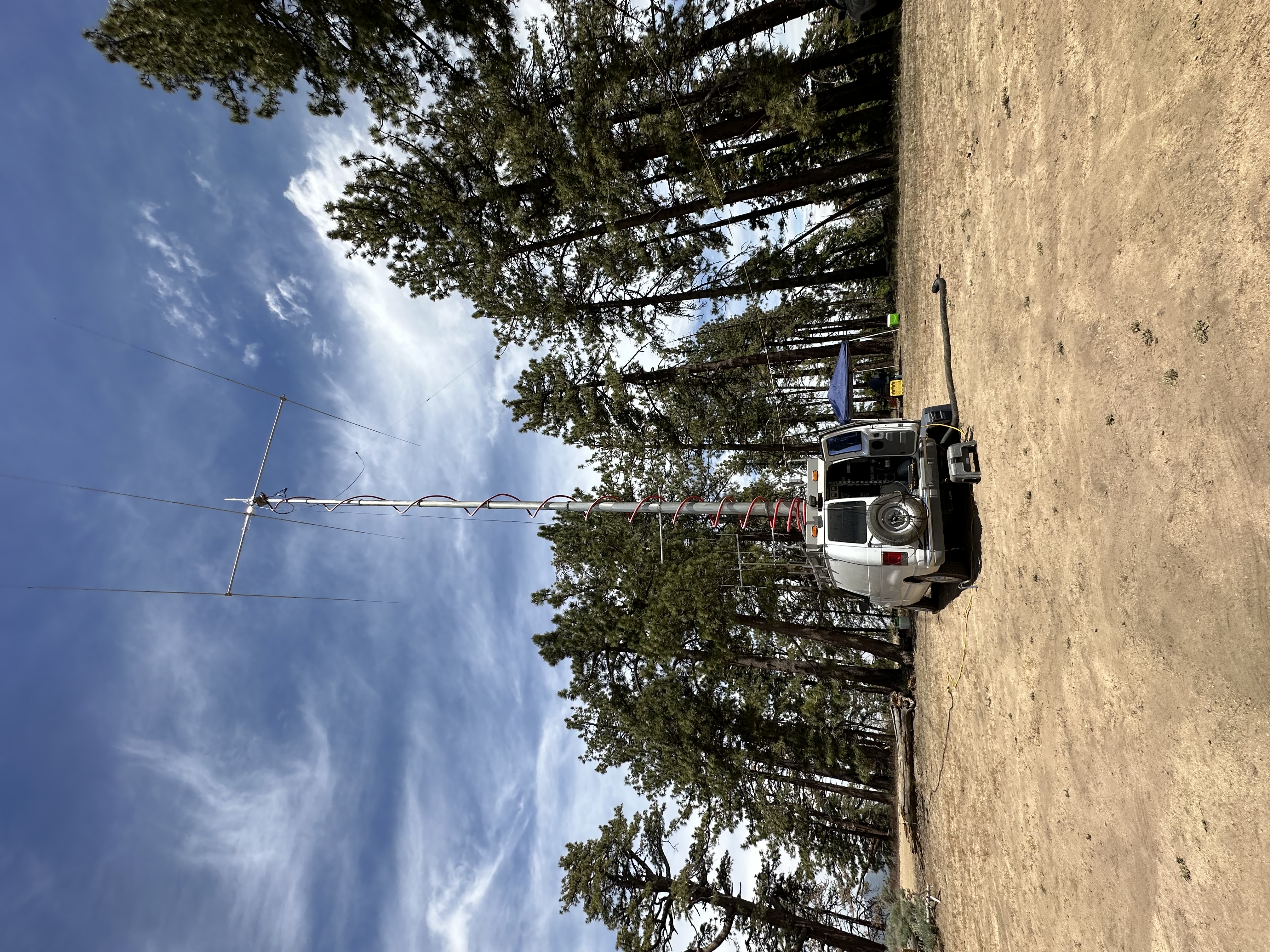 2023In May 2023, Jim and Sheila Forsyth hosted a multi-operator CQ Worldwide WPX Contest group at the AF6O station in DM14 (in in the California Mojave desert with thousands of blooming Yucca plants). This San Bernardino County station has a gentle downward slope toward Japan and Europe (good for low bands). We used the AF6O KT34A four element yagi at about 50 feet on 10, 15 and 20 meters. We used delta loops on 40 and 80 meters. Scott (N6MI) and Jim (AF6O) often operated as a team in the pileups; Jim's scratch paper could be an art project. Drew (N7DA) did a great job at the computer and paddle. Our raw results: 3.5 (16 contacts); 7 (280 contacts); 14 (507 contacts); 21 (419 contacts); 10 (25 contacts). The Yaesu FTdx101D waterfall was a great help with search and pounce. After adjudication, our final score was 1,238,292. We finished first in California (the Sixth Call Area) and tenth in North America. On June 10-11, 2023, N6MI and K6VCR went portable as "N6MI" from the Mojave Desert (near Fort Irwin, California) to hand out a few rare DM15 contacts during the ARRL VHF contest. We operated from a converted news van. We ran 500 watts (or less) on six meters to a five element yagi at 60 feet. We ran 100 watts on two meters for a handful of contacts. Before log checking, we worked 11 CW, 49 USB, and 156 FT8 contacts (almost all on six meters) -- 123 grids with contacts in the continental United States, Hawaii, Mexico, Canada, Ireland, Switzerland, and France. Six meters was booming on Sunday morning, but we packed up after the weather turned to hail and thunderstorms. We won the certificate for this ARRL division (Orange) in the Limited Multioperator class. On June 24-25, 2023, Tom's Garage ARC operated in the ARRL Field Day (call, N6MI) as 2A SJV from Tecuya Peak (6,850 feet at our camp) in Kern County, California (DM04mu). We finished sixth in the country out of 308 entries in Class 2A. We camped immediately next to a very busy dirt road, about two miles from pavement and a rural pizza takeout restaurant. The nearest town was Frazier Park, California. Our team included NB6E, N6MI, K6VCR, N7DA, KN6OGP, K1BTW, and Broden Weeks (a high school student, not yet licensed). KN6OGP came down with a bug just before the contest, but his assistance with logistics and early Field Day planning was very helpful to the group. The first station was set up in a converted television news van with a pneumatic mast. The van station covered 80 (long wire), 20 (3 element yagi at 60 feet), and 10 meters (sloping dipole). The van radio was a Yaesu FTdx101D. The van also housed a 2 meter and 440 MHz station using an Icom IC-9700 and two very short yagis. The second station was set up in K6VCR's trailer. This station covered 40 (two element yagi on a 50-foot army surplus mast) and 15 (three element yagi on a 28 foot push up mast). The radio was an Elecraft K3. The GOTA station was set up on a table under a canopy (classic Field Day style); the photo was used on the cover of the June 2024 QST magazine. This station was operated by K1BTW and his soon-to-be licensed son, Broden (a high school student); that's K6VCR wearing his GOTA coach face. N7DA also served as a GOTA coach. Broden worked New Zealand and Australia stations on 10 meters when he wasn't pumping out contacts to the Field Day crowd under the watchful eye of K1BTW. We were visited by about a dozen travelers. The weather was cold at night (in the 30s) but excellent (sunny, in the 60s) during the day. We made 2,059 contacts from the two main stations (the van and trailer). Our GOTA station also made 209 contacts — fantastic. Call: W6E, October 7-8, 2023