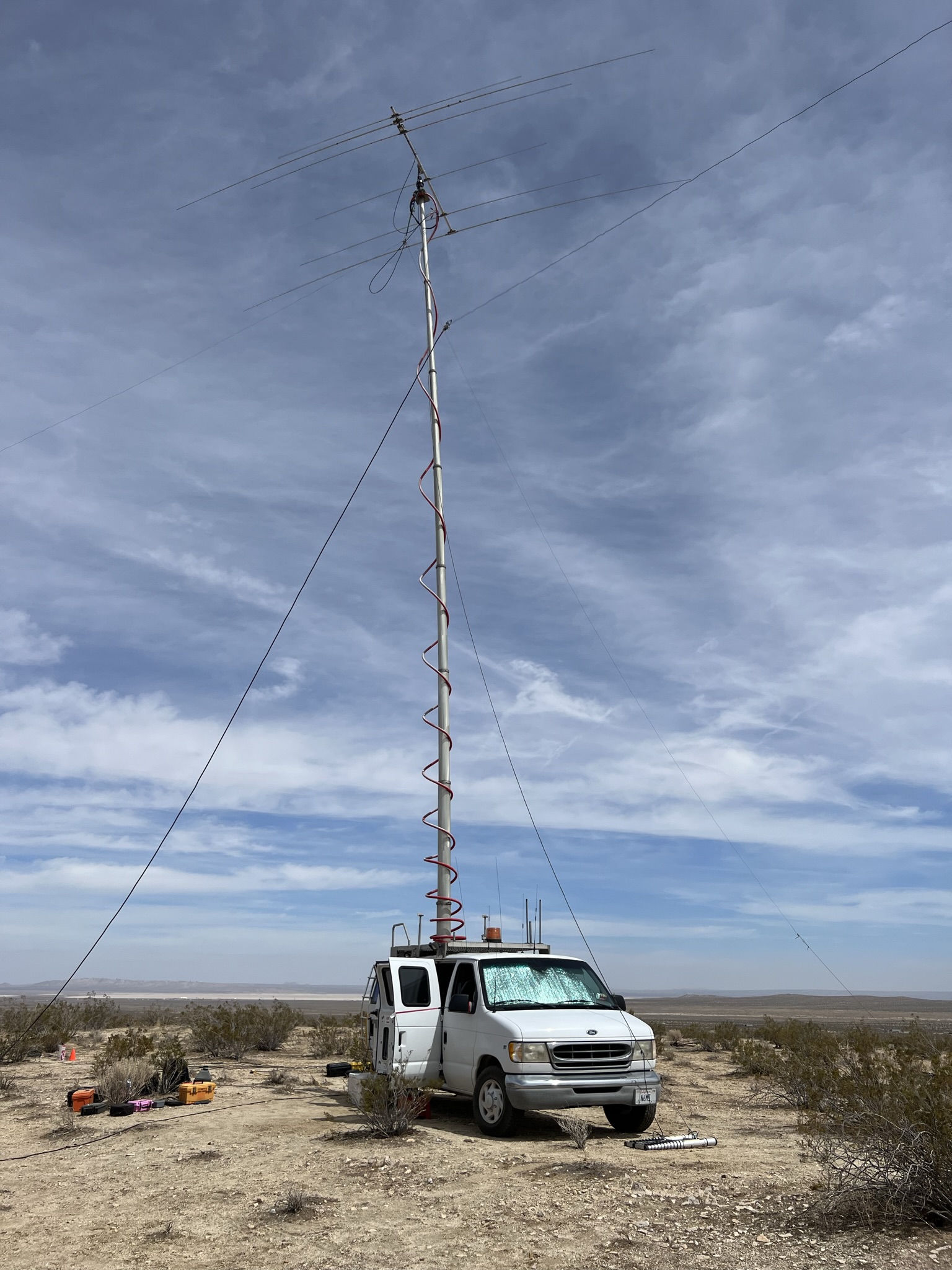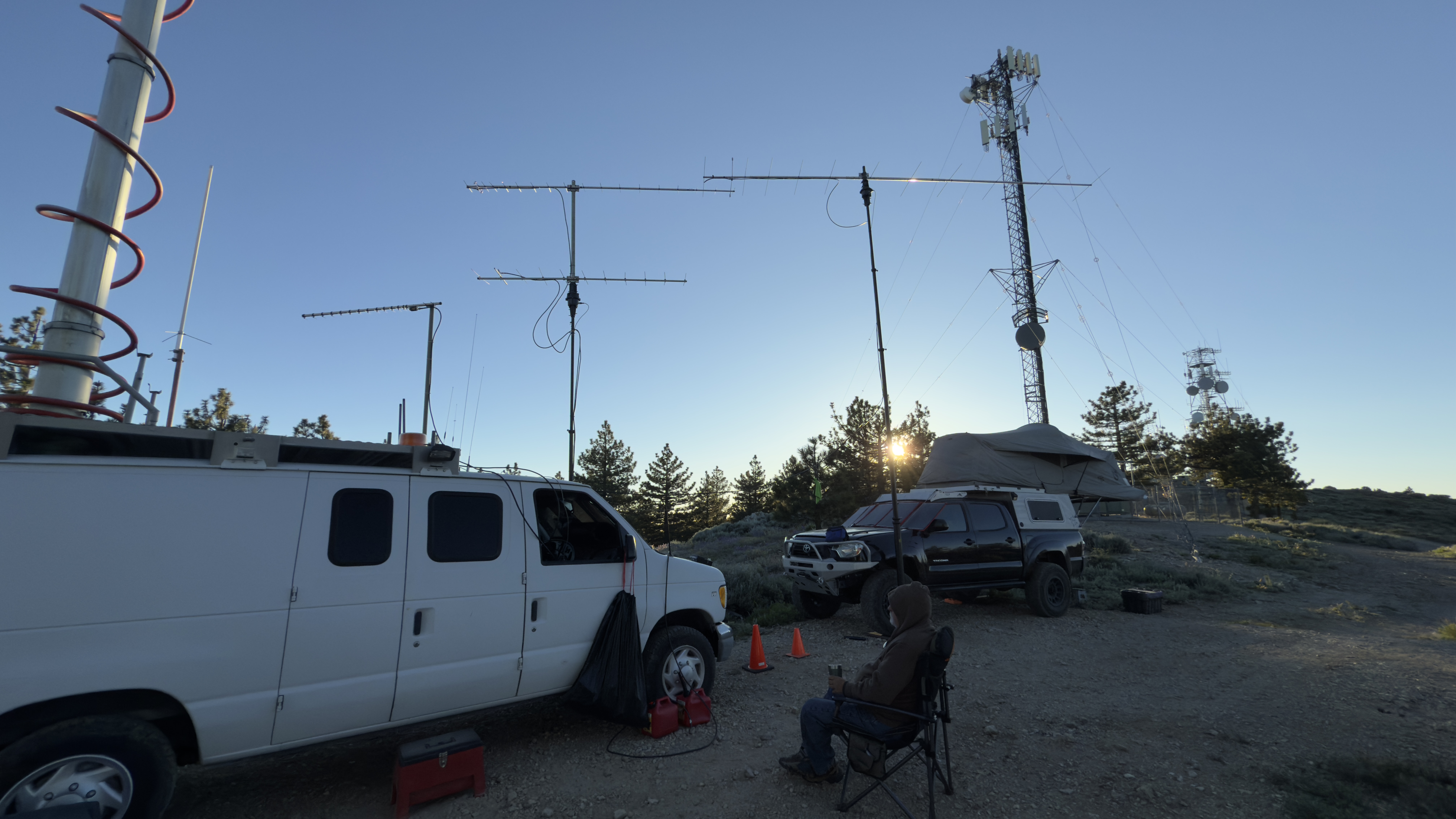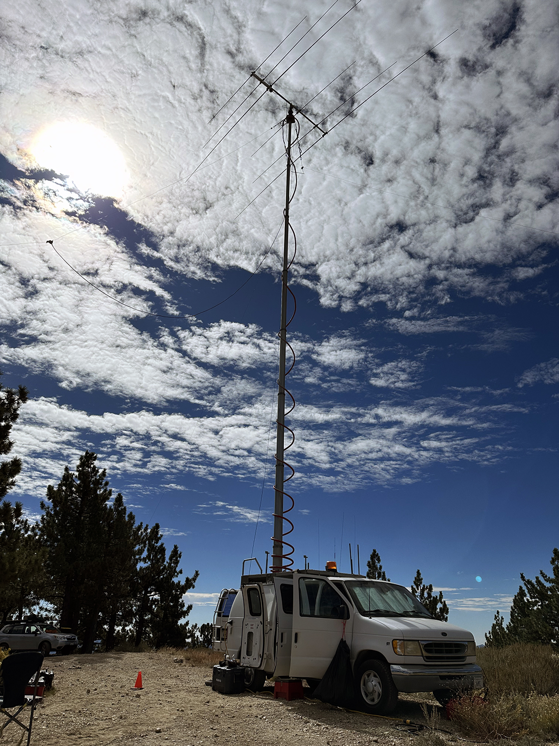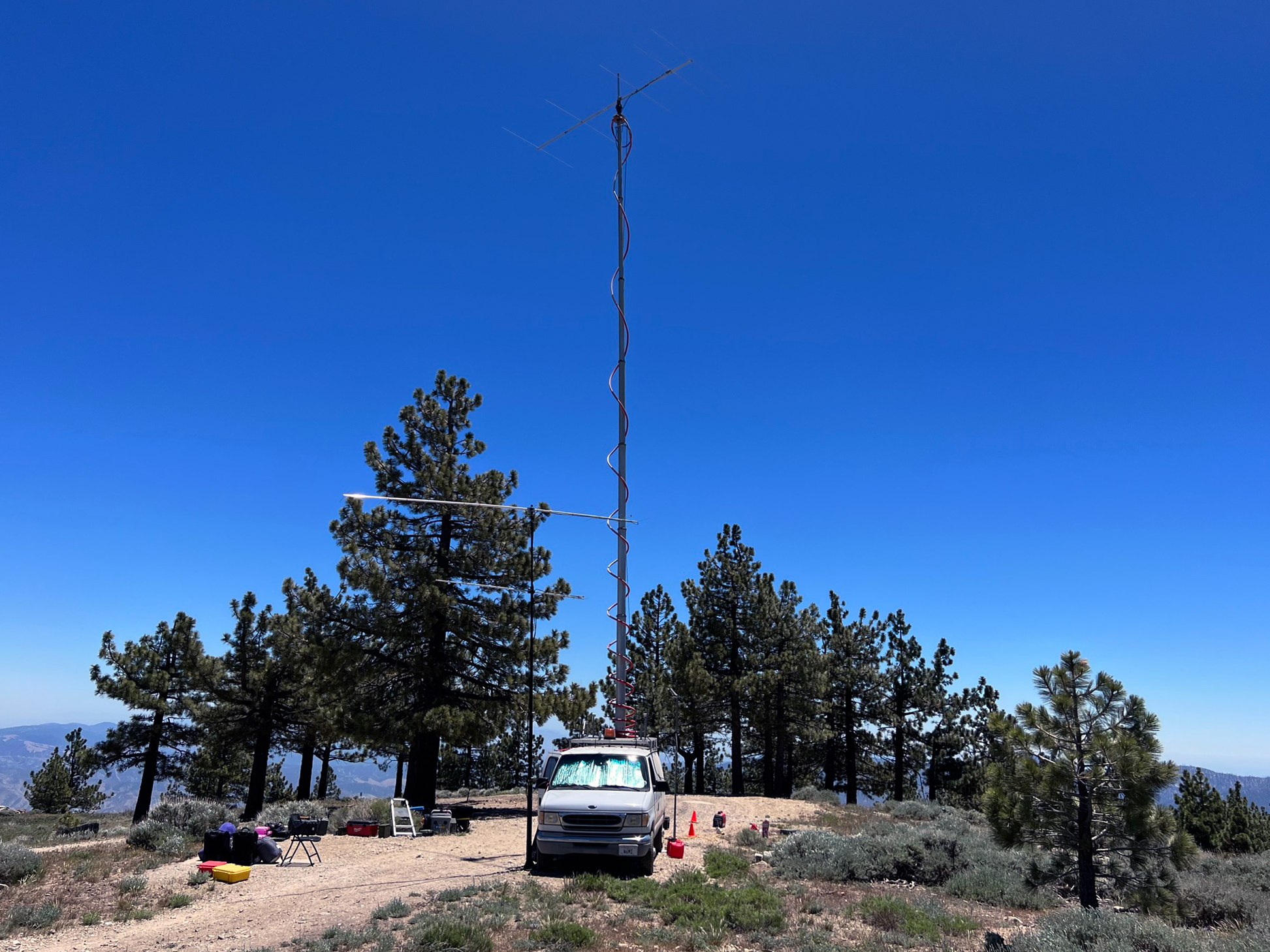 2022May 2022 CQ WPX CW contest from DM15aa in the hot and windy desert near Mojave, California. We operated from N6MI’s converted television news van. It was 95 degrees in the van on Thursday, but about ten degrees cooler on Friday and Saturday. The team included N6MI (Scott), N7DA (Drew), and W6PNG (Paul). Paul camped in his tricked out contest Jeep, with a bat wing for shade. The team used a small triband antenna at 60 feet for 20, 15, and 10 meters. Paul calculated the horizon from camp. We used a sloper on 40 meters, oriented toward Japan, with one end anchored by N7DA’s vehicle. We used an inverted vee on 80 meters. N7DA enjoyed his night shifts. 20 meters never closed. We operated for the first 23 hours and made 651 contacts. Paul left early to handle family business. Then Drew and Scott broke camp (reluctantly) on Saturday afternoon after the yagi started rotating on its own in the very strong winds (with gusts projected to reach 57 miles an hour). This was Paul’s first CW contest. Even with our early departure, we finished second, United States 6th Call Area, Multi-Operator Single-Transmitter High Power. I operated the June 2022 ARRL VHF Contest in the single operator, high power category from Frazier Peak, Ventura County, California (DM04ms) at 8,013 feet in N6MI’s converted news van. I received first place (Santa Barbara Section) and third place (Southwestern Division). I was the Southwestern Division band winner on 50 MHz, 144 MHz, 432 MHz, and 1296 MHz.