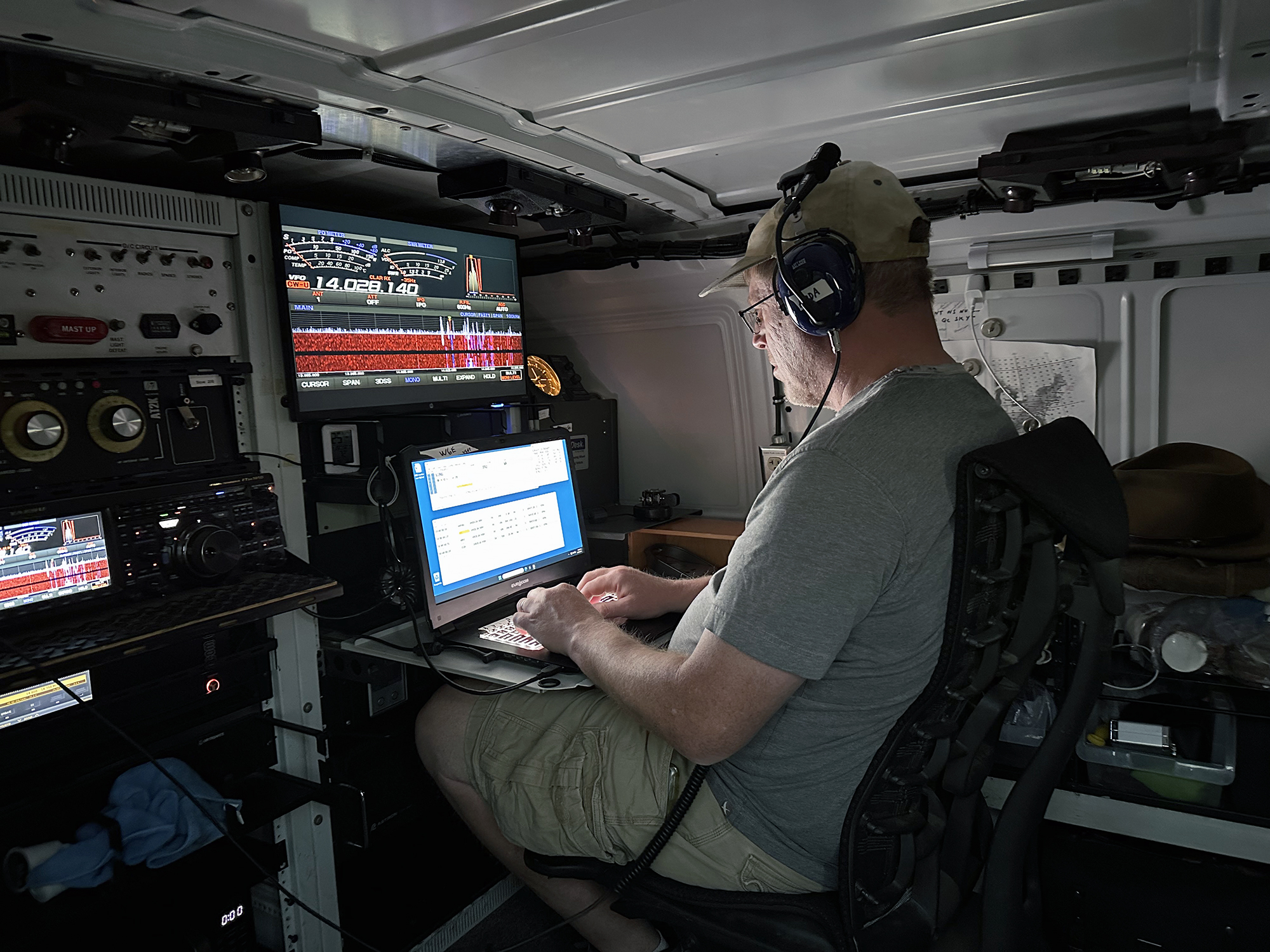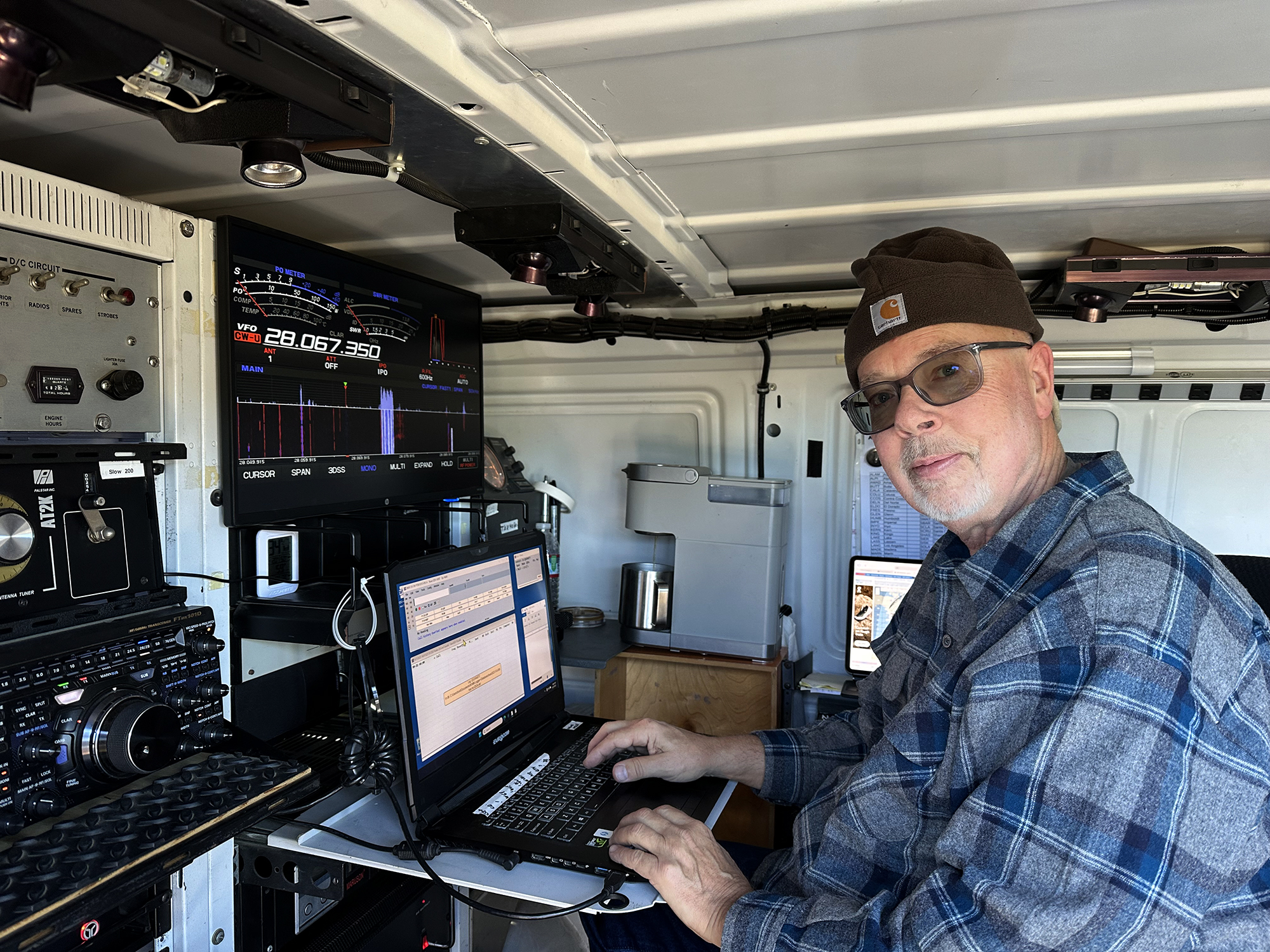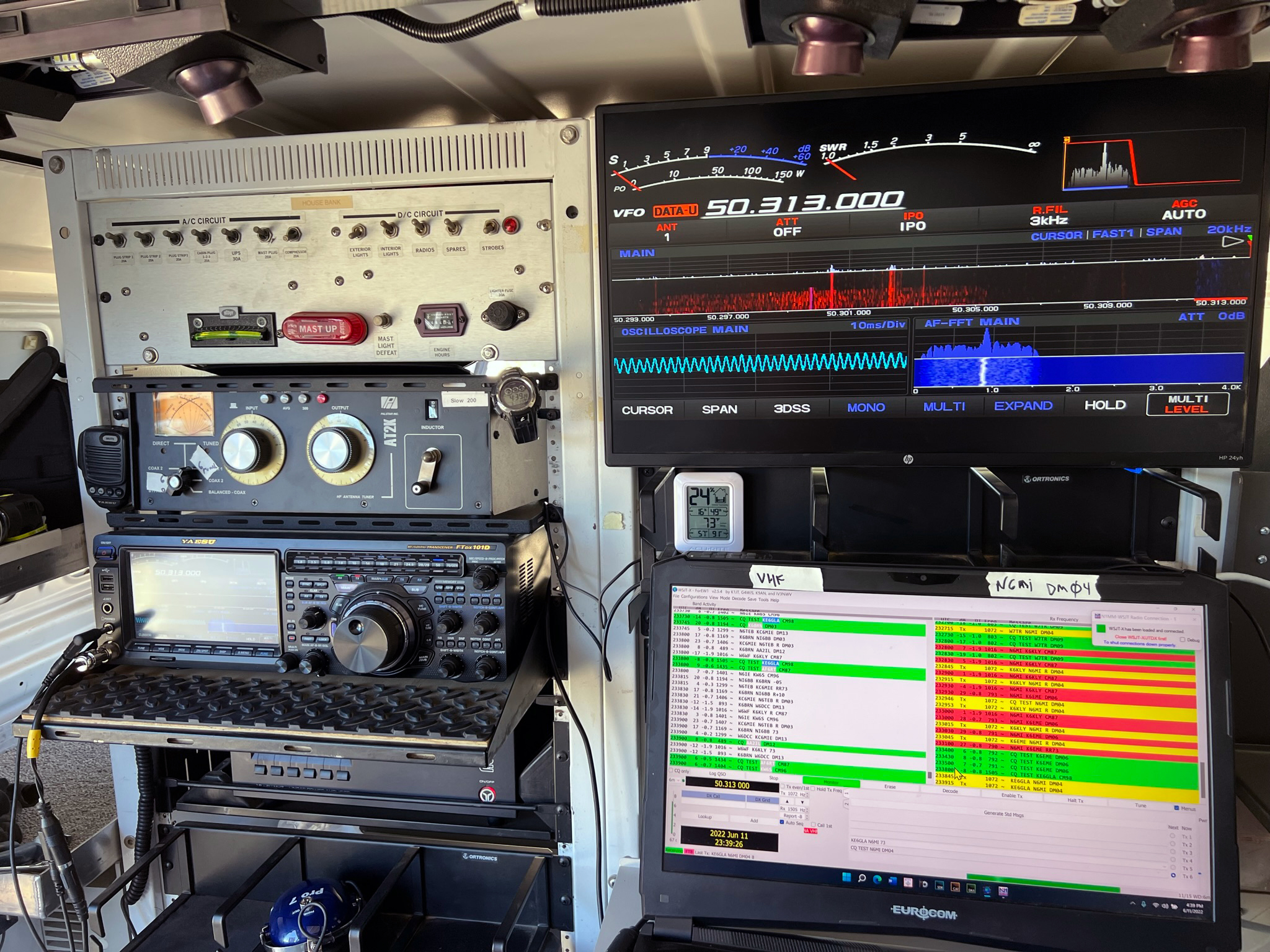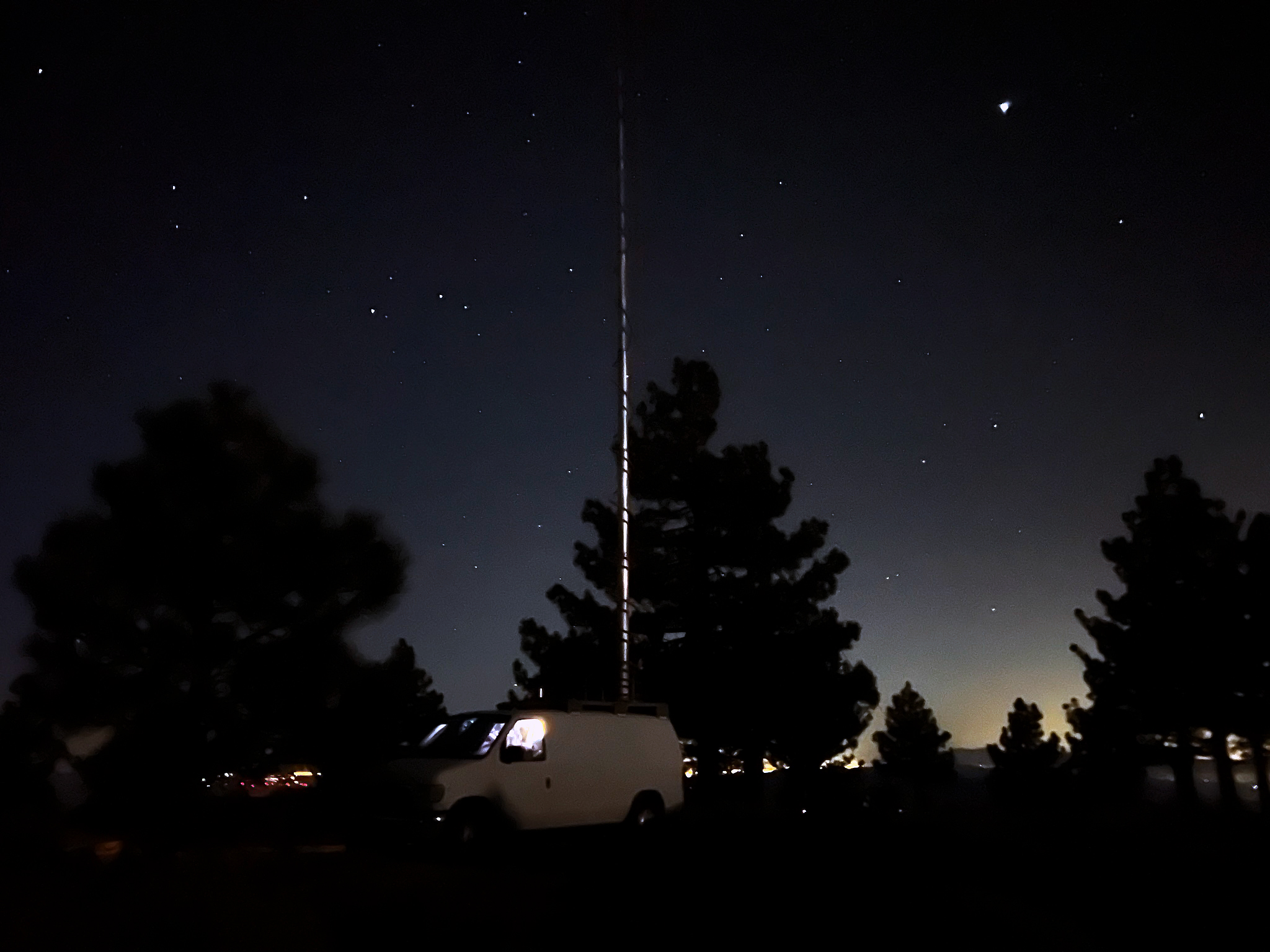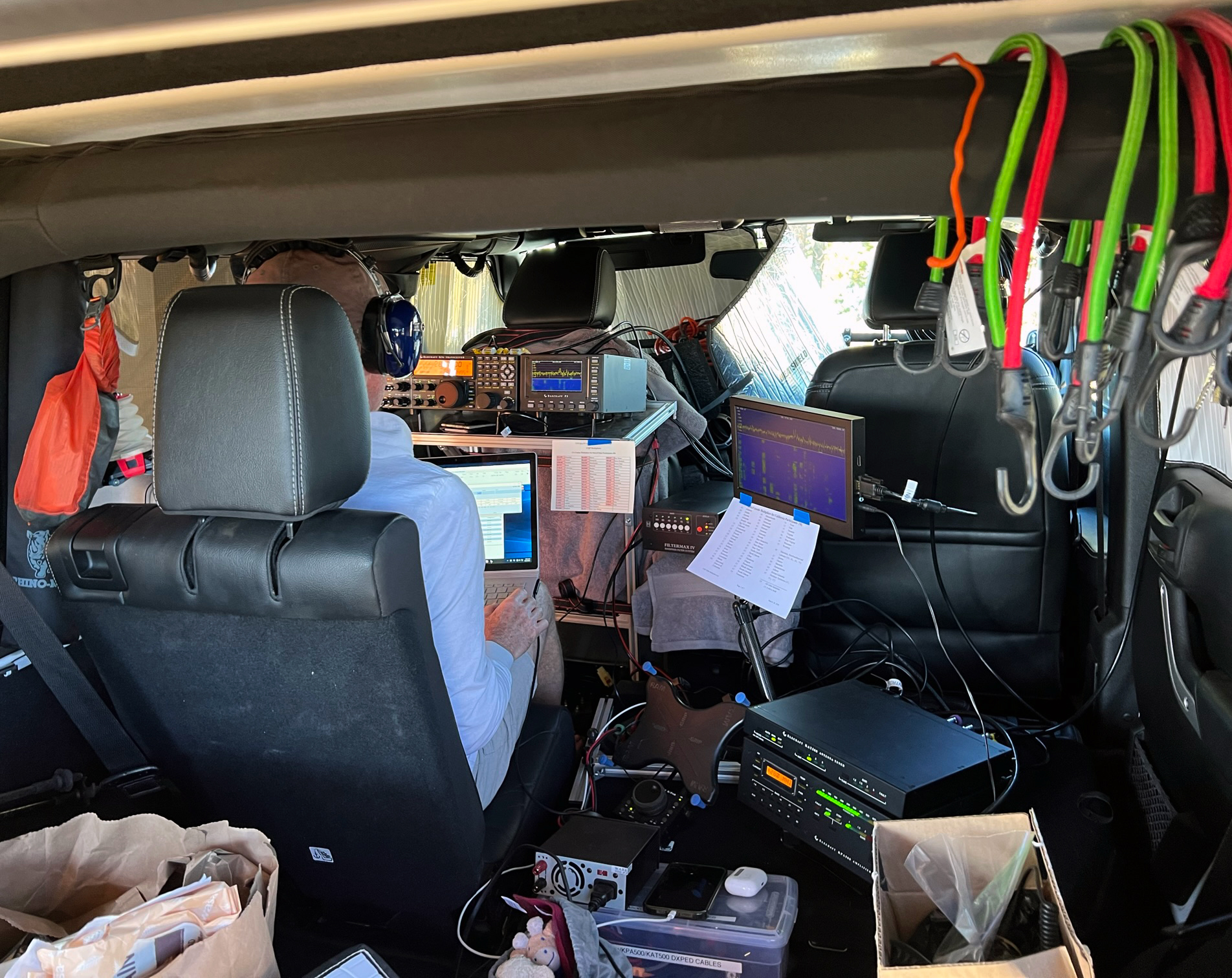 2022May 2022 CQ WPX CW contest from DM15aa in the hot and windy desert near Mojave, California. We operated from N6MI’s converted television news van. It was 95 degrees in the van on Thursday, but about ten degrees cooler on Friday and Saturday. The team included N6MI (Scott), N7DA (Drew), and W6PNG (Paul). Paul camped in his tricked out contest Jeep, with a bat wing for shade. The team used a small triband antenna at 60 feet for 20, 15, and 10 meters. Paul calculated the horizon from camp. We used a sloper on 40 meters, oriented toward Japan, with one end anchored by N7DA’s vehicle. We used an inverted vee on 80 meters. N7DA enjoyed his night shifts. 20 meters never closed. We operated for the first 23 hours and made 651 contacts. Paul left early to handle family business. Then Drew and Scott broke camp (reluctantly) on Saturday afternoon after the yagi started rotating on its own in the very strong winds (with gusts projected to reach 57 miles an hour). This was Paul’s first CW contest. Even with our early departure, we finished second, United States 6th Call Area, Multi-Operator Single-Transmitter High Power. I operated the June 2022 ARRL VHF Contest in the single operator, high power category from Frazier Peak, Ventura County, California (DM04ms) at 8,013 feet in N6MI’s converted news van. I received first place (Santa Barbara Section) and third place (Southwestern Division). I was the Southwestern Division band winner on 50 MHz, 144 MHz, 432 MHz, and 1296 MHz.