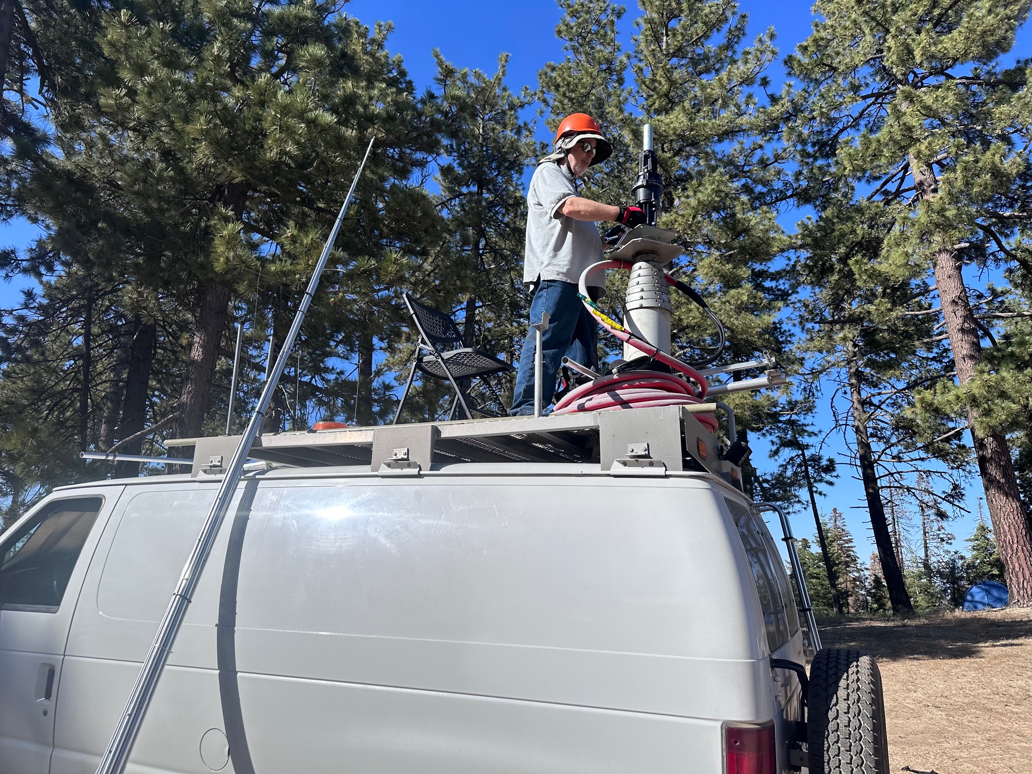 I made 349 contacts in 142 grids, including 118 grids on six meters. I was not able to break the wall of QRM into Europe, but I did work my first JA on six meters. I operated until about noon on Sunday. When I left the mountain, six meters was still open. The results: In Field Day (June 2022), Scott (N6MI) and Larry (NB6E) operated Class 1B from DM04ms in the Santa Barbara section on Frazier Peak (8,013 feet). We used a very nice JK Antenna CS3-JK (triband yagi on a 12 foot boom), up at 60 feet on the N6MI pneumatic mast. The peak is covered with commercial antennas, but very little interference was heard on the low bands. The weather was perfect -- high 70s in the day and about 55 at night, with winds under 10 miles per hour. Shane and Broden Weeks came to visit and brought ice cream. Broden is a high school student and founder of BNinja Productions. We made 1,096 contacts (910 on CW, 16 on FT-8, and 170 on phone). 20 meters was our best band (480 CW, 3 FT-8, and 30 USB contacts). We finished second place, nationally, in Class 1B-two operators. In October 2022, Scott (N6MI), Drew (N7DA), and Paul (W6PNG) operated two stations in the California QSO Party using the special call sign, W6E. This was a multi-multi (two transmitter. high power) expedition to Frazier Peak (8,013 feet) in Ventura County California. The location has a nice downward slope to the east. Paul set up a SSB (phone) station from his well equipped Jeep with a hex beam and and an offset wire for low bands. Scott set up a CW station in his former television news van, with a yagi at 60 feet (10, 15, 20), a sloper (40), and an inverted vee (80). (Drew did the hard work.) After log checking, we made 2,025 contacts over 30 hours. Drew worked both SSB and CW. Ten meters was open on both Saturday and Sunday -- conditions are improving. The weather was perfect (about 70 degrees in the day and 48 degrees at night, with light winds). The stars were very bright. Drew and Paul were able to work a few SOTA stations before, during, and after the contest. We were fourth place in California in our category. We set a new county record for a M/M HP Expedition.