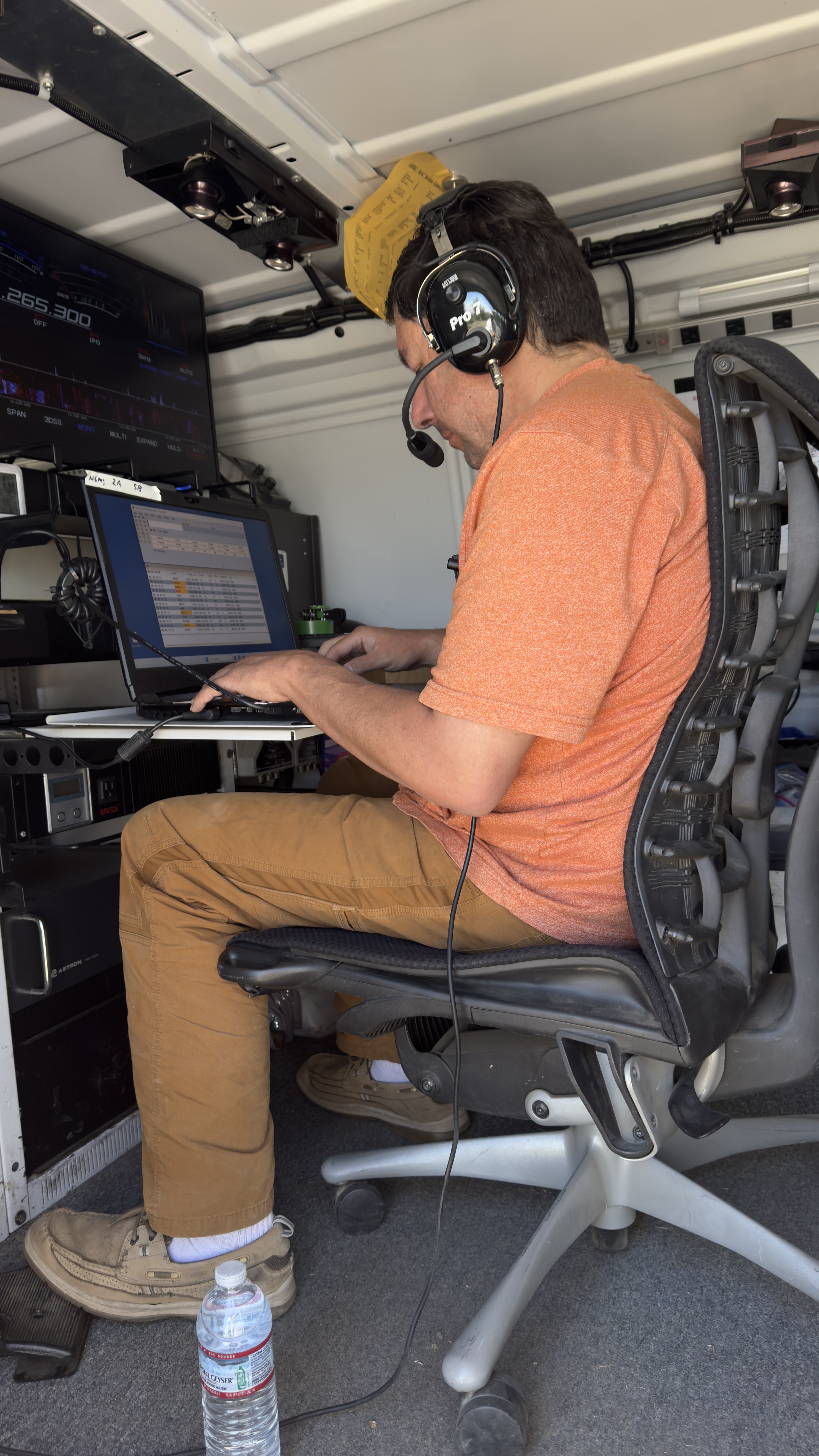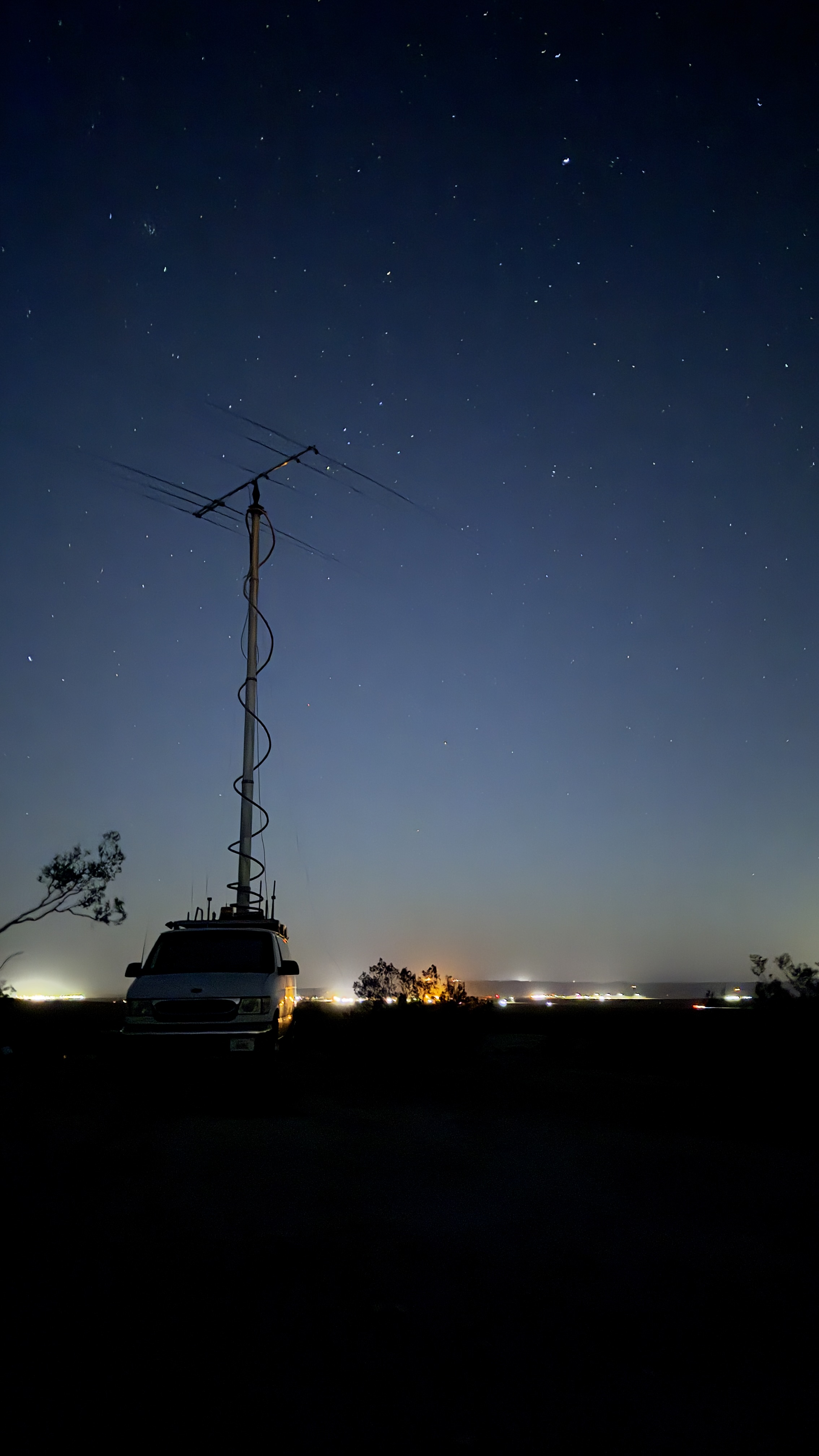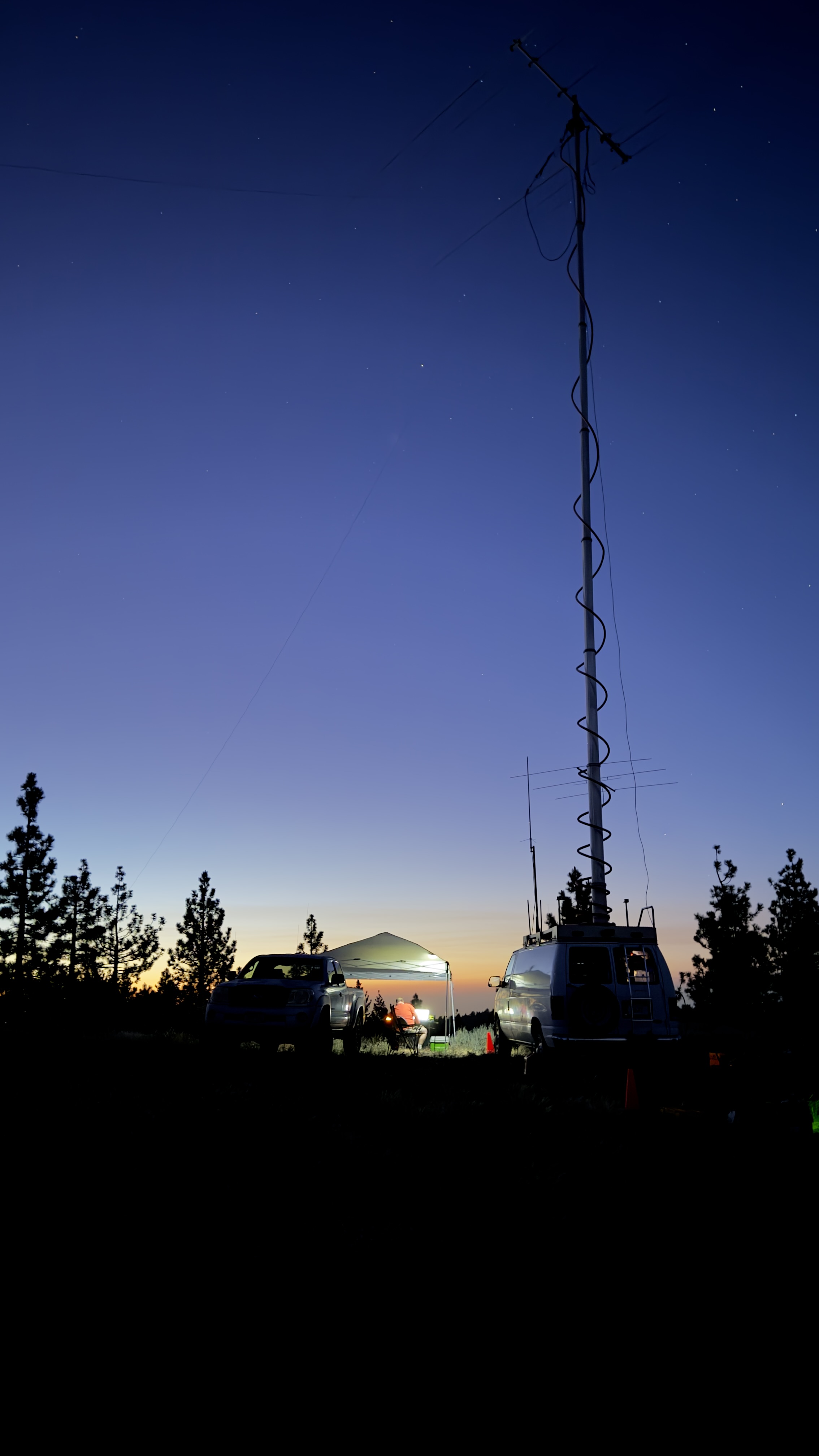 2025On January 18-19, 2025, I operated in the van from my driveway (single operator, low power, using whips only, DM13bw, at about 1,012 feet above sea level). My radio was an ICOM IC-9700. I finished first place in the Orange Section and 3rd place in the Southwestern Division. No camping. Hot kitchen. Easy peasy. On May 24-25, 2025, I traveled to Frazier Mountain (DM04ms) to operate the CQ WPX CW contest (one transmitter in a solo operation). This 8,013 foot mountain is in eastern Ventura County, California (in the Los Padres National Forest). I ran 600 watts from the N6MI converted news van/cellular on wheels. I used a JK tri-band yagi at 60 feet (two elements per band), along with a 40 meter inverted vee. The weather was nice (about 74 degrees in the day), but cool (about 36 degrees) at night. There was no wind during the set up, but it started to blow each afternoon and evening (maybe 25 miles per hour, with higher gusts). As usual, I set up a row of individual boxes on the ground with all the gear needed (or that might be needed) for the contest. After dark, the stars were bright. The band of the Milky Way was clear. Conditions were good. 20 meters was packed, well into the evening. 15 meters was open early to Europe. I operated on 40 meters (27 contacts), 20 meters (236 contacts), 15 meters (338 contacts), and 10 meters (72 contacts, mostly to Australia, New Zealand, and Southeast Asia). Many rare countries were on the air. Thank you for the contacts. I finished #17 in the Sixth Call area, -- a casual finish in the Single Operator, High Power, All Band category. On June 14-15, 2025, Tom (K6VCR) and Scott (N6MI) operated from Frazier Mountain (DM04ms, 8,013 feet, Ventura County, California) in ARRL's June VHF contest (the unlimited multioperator division). We operated from the crowded N6MI converted television news van (6 meters mounted on the back rack of gear, with higher bands mounted on the rack of gear between the front seats). Tom made camp in his tricked out four-wheel drive truck. I slept on the floor of the van. The moon was very bright, so flashlights were optional. It was about 46 degrees at night and 78 degrees in the day. A fierce wind blew on the Friday night before the contest, but the peak gusts on Saturday were only about 15 miles per hour. We used: a five element yagi on 6 meters at 60 feet (500 watts); a 12 element yagi on 2 meters at 20 feet (100 watts); an 11 element yagi on 222 MHz at 12 feet (75 watts); an 18 element yagi on 432 MHz at 16 feet (75 watts); and a 16 element yagi on 1296 MHz at 12 feet (10 watts). We left our microwave antennas at home for this contest. Yellow and purple wildflowers were in bloom on the mountain. The sunrises and sunsets were awesome. Our raw score: 279 contacts and 110 grids on 6 meters (40 CW, 77 USB, and 162 FT8); 58 contacts and 12 grids on 2 meters (23 FM, 31 USB, and 4 FT8); 16 contacts and 6 grids on 222 (5 FM, 11 USB); 26 contacts and 7 grids on 432 MHz (11 FM, 15 USB); and 6 contacts and 6 grids on 1296 MHz (1 CW, 3 USB, and 2 FT8). We earned: First Place, Santa Barbara Section; and Second Place, Southwestern Division. On June 28-29, 2025, six members of Tom's Garage Amateur Radio Club operated Field Day as N6MI (2A SB) from the Los Padres National Forest on Frazier Mountain (8,013 feet high), Ventura County, California (DM04ms). Tom (K6VCR) and Drew (N7DA) ran the 40 and 15 meter station (100 watts) from Tom's comfortable trailer. They used a two element 40 meter yagi at 50 feet (AB-577 mast) and a three element 15 meter yagi at 25 feet. Larry (NB6E), Greg (KI6RXX), and Scott (N6MI) operated the 80-20-10 meter station (100 watts) from Scott's converted television news van. The van team used an inverted vee on 80 meters and a tri band JK Antenna yagi (C3S-JK) at 60 feet (pneumatic mast) for 20 and 10 meters. Shane (K1BTW) ran the VHF station from a card table under an awning, with over the shoulder instructions from N6MI about FT8. Shane used a three element yagi at 20 feet on 6 meters (armstrong rotator), a vertical for two meters at 12 feet, and a handheld on 223.5 FM. With Tom's instruction, Drew has become an expert in quickly and safely erecting the military surplus AB-577 (http://ontariosurplus.com/ab-577_guy_diagram.htm). We were not able to field a GOTA station this year, but we will try to find some rookies for next time. The weather was pleasant (high 70s in the day and about 48 degrees at night). The wind was calm, with occasional bursts up to 15 miles per hour. No problem. We camped out. Radio conditions were modest. On the first day, there was atmospheric noise on 20 meters. The conditions settled down on Saturday evening. Ten meters never opened for us. This year, our chef (KN6OGP) was unable to attend Field Day. We missed his waffles and burgers. But a young member of the press (Broden Weeks) brought us pizzas on Saturday evening. Publicity and a (still) hot meal -- such a deal. A few months after the contest, Broden passed his test and was eventally awarded call sign K2BTW. Super! We finished 12th in the crowded 2A category (286 entries): 3.5 CW 29 7 CW 250 14 CW 545 (NB6E on the night shift) 21 CW 315 28 CW 2 (sad band conditions) 50 FT8 45 144 FM 67 222 FM 3 If your club would like a Zoom presentation on Field Day or portable contesting, we will provide a speaker and slide show to your club. Contact N6MI, bovitz@bovitz.com. Thank you for the Field Day contacts. On August 16, 2025, I operated solo on the first day of the 10 GHz from Inspiration Point on Blueridge (DM14di), about 7,500 feet elevation, above Wrightwood, California. I used an Icom IC-905 (1/2 watt) and an 18 inch AH-109PB dish mounted on my van about 13 feet above the ground. I parked my van next to a microwave repeater site -- here is a photo in the moonlight. The long view to the east and steep drop to the northwest (for the roving stations in the Central Valley) were great. Some hills limited my local contacts in the Los Angeles basin. S