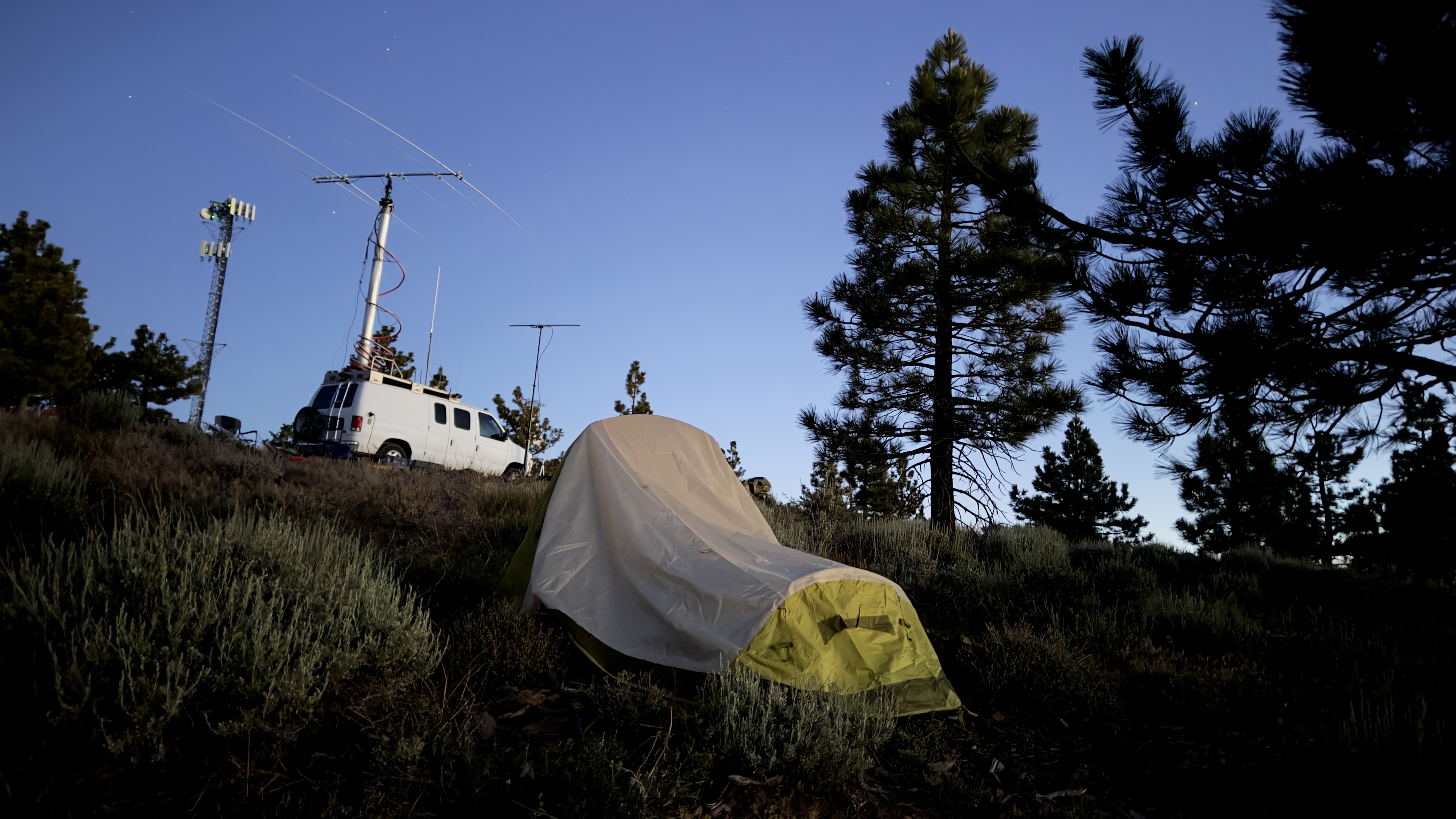 2021May 2021 CQ WPX CW contest (#1 U.S. Sixth Call Area, tribander/single element/high power class from Frazier Peak, Ventura County, DM04). I built the yagi on the roof and then used the pneumatic mast to erect the antenna to about 60 feet above the ground. The sunrise on Sunday was a special treat. It was about 44 degrees at night and in the 60s during the day. The 20 meter band was especially active. June 2021 ARRL VHF contest, 20 miles northeast of Mojave, DM15aa. First place, San Joaquin Valley Section, Single Operator, High Power. 51 degrees (nights), 99 degrees (days).